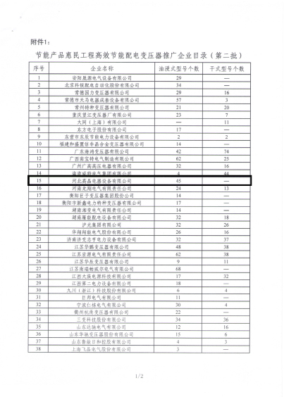 在公布的目錄中,河北高晶電器設備有限公司有45個油浸式型號入圍,這說明我公司自主研發的能效產品得到了國家政府部門的肯定,彰顯了我公司產品質量和技術實力。