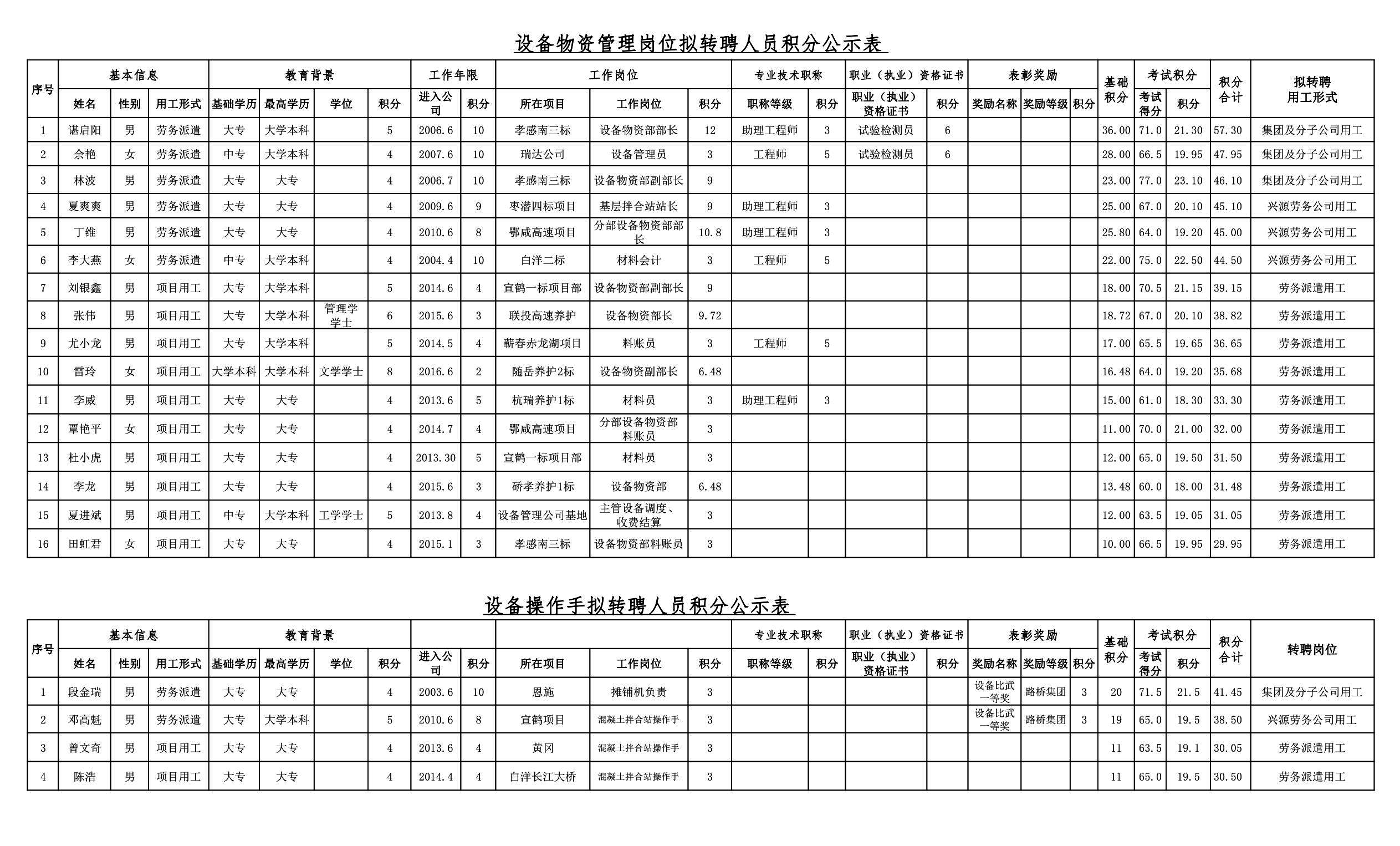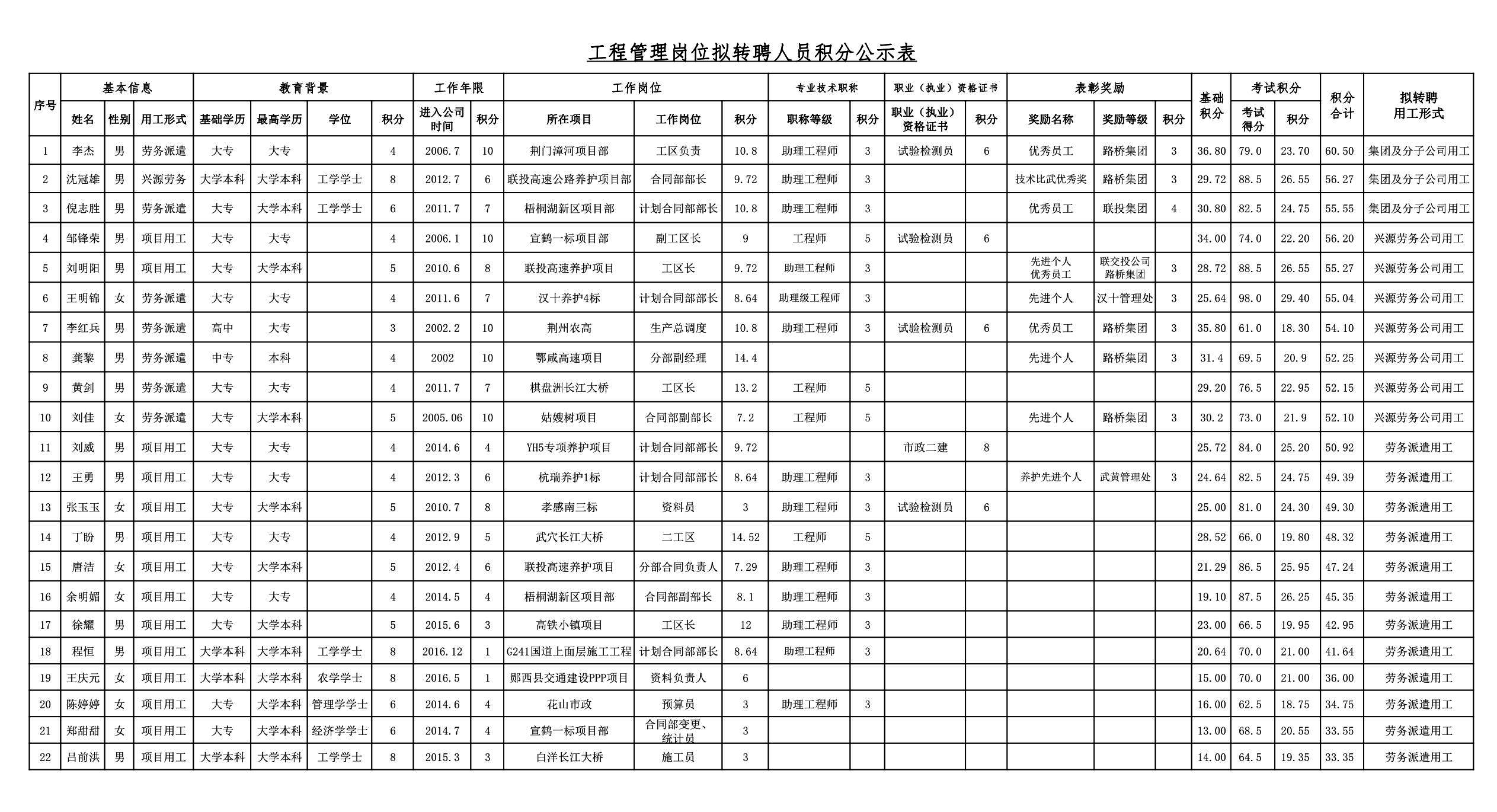 湖北路橋2018年關(guān)于擬轉(zhuǎn)聘人員的公示