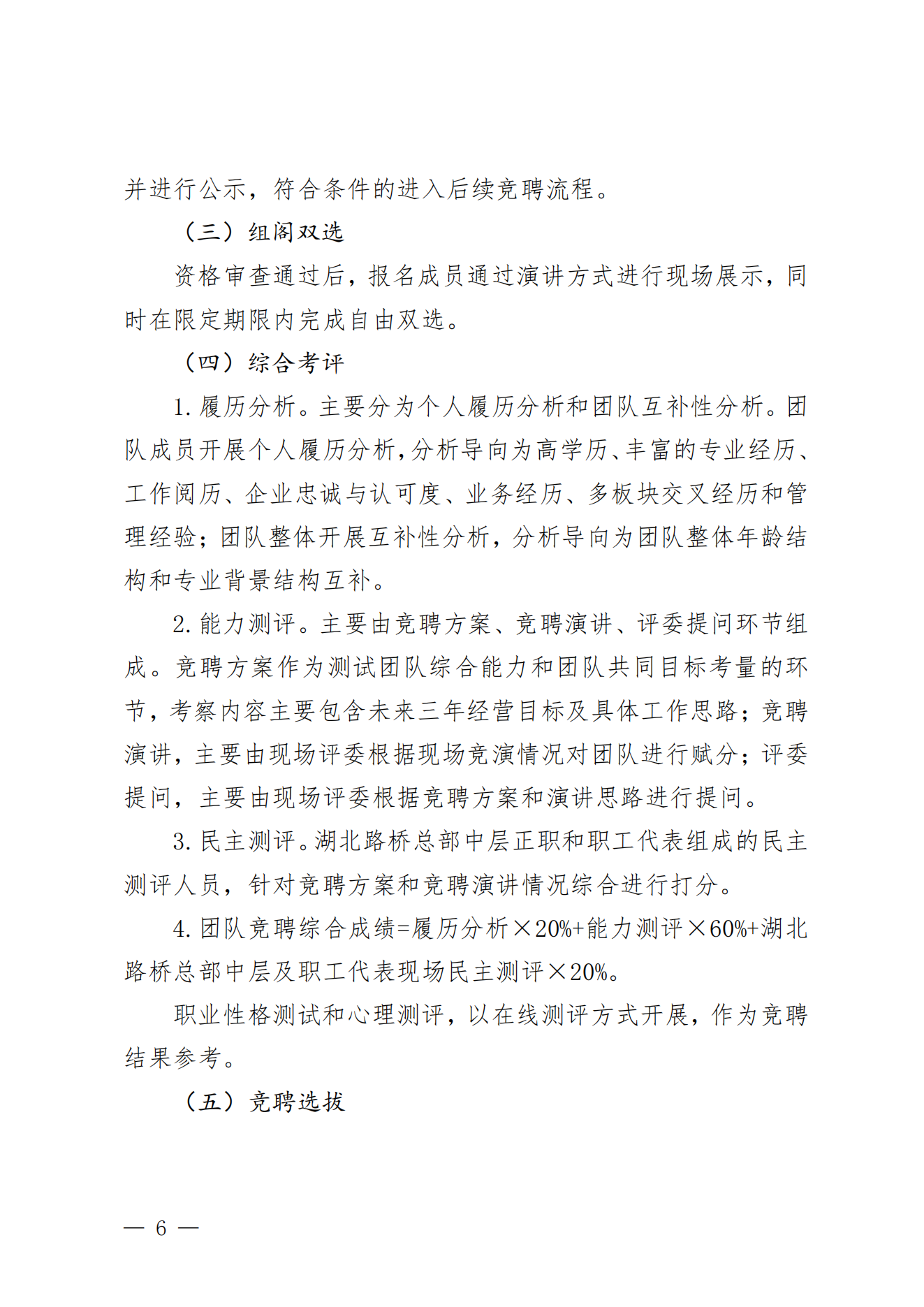 人才強(qiáng)企丨湖北省路橋集團(tuán)有限公司下屬橋隧公司經(jīng)營(yíng)層團(tuán)隊(duì)組閣競(jìng)聘考察對(duì)象的公告