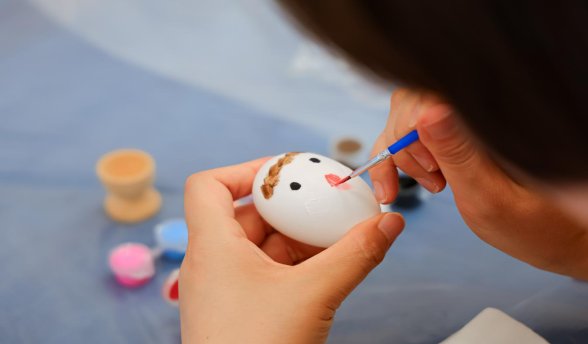 手工體驗環(huán)節(jié),大家圍桌而坐,填充香料、綁扎絲帶、裝飾香囊,用畫筆和顏料裝飾自己最特別的那顆彩蛋……一筆一劃充滿喜悅、飽含祝福。