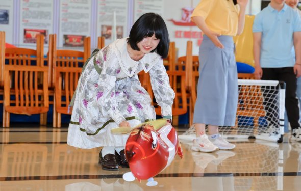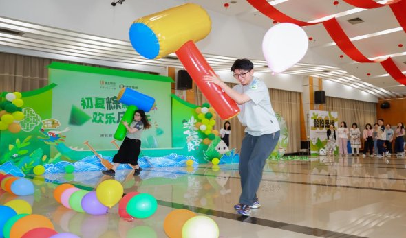 趣味游戲環(huán)節(jié),大家積極踴躍參與,限時釣粽子、魔方比大小、“趕雞入籠”接力賽、“一錘定音”砸氣球……現場歡呼聲、吶喊聲,此起彼伏,高潮迭起。