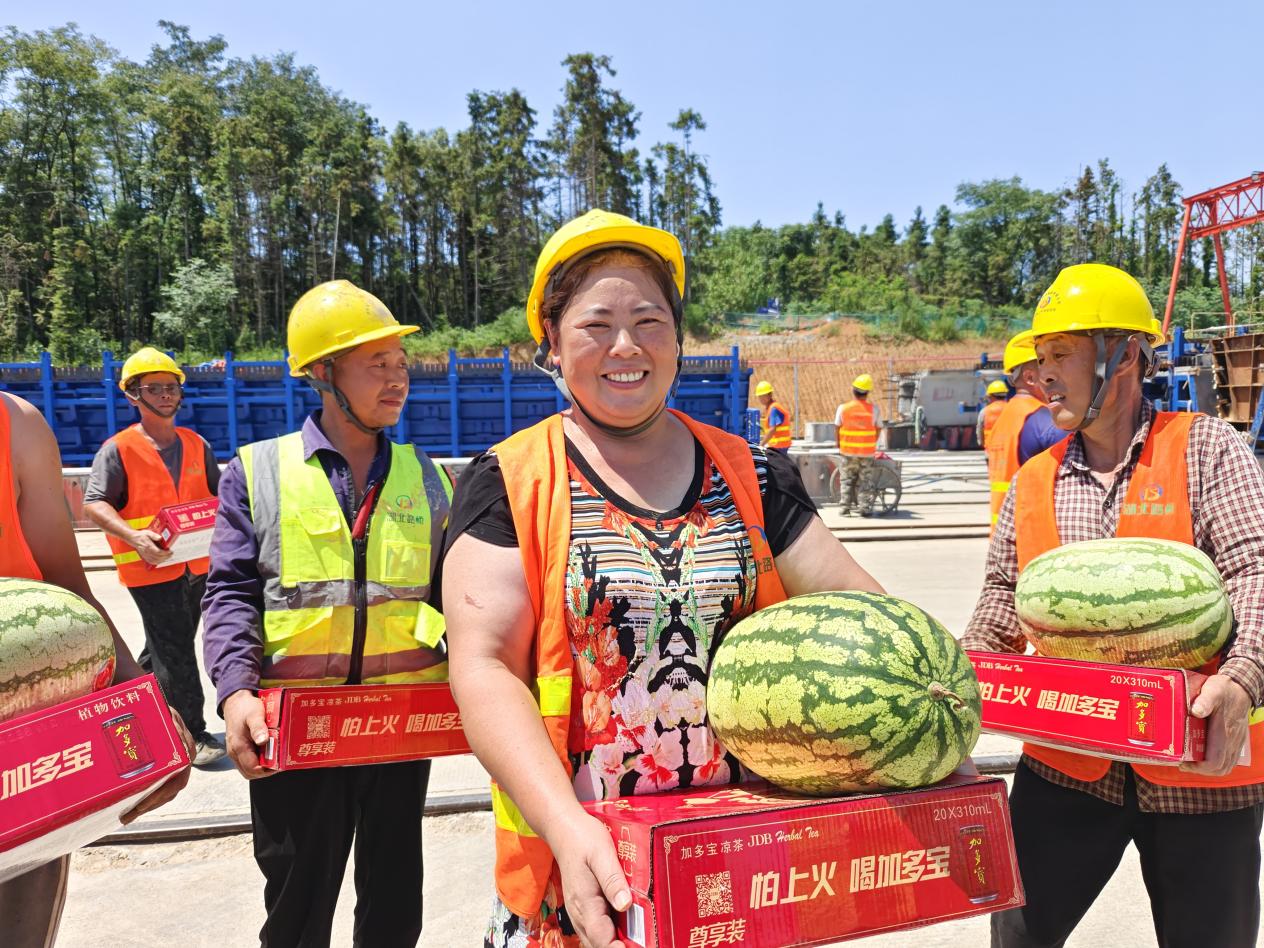 汪繼明深入赤壁東項目2號梁場,實地察看項目施工進展、安全質(zhì)量管控等情況,隨后在項目現(xiàn)場進行慰問,將防暑降溫物品送到一線員工手中,將集團的關心關愛送到職工群眾心坎上,為酷暑“降”溫,讓愛心“升”溫。同時他貼心叮囑大家要勞逸結合,注意防暑降溫,確保安全生產(chǎn)。湖北交投鄂南公司黨委書記、董事長倪四清,黨委委員、副總經(jīng)理湯立志等參與慰問活動。