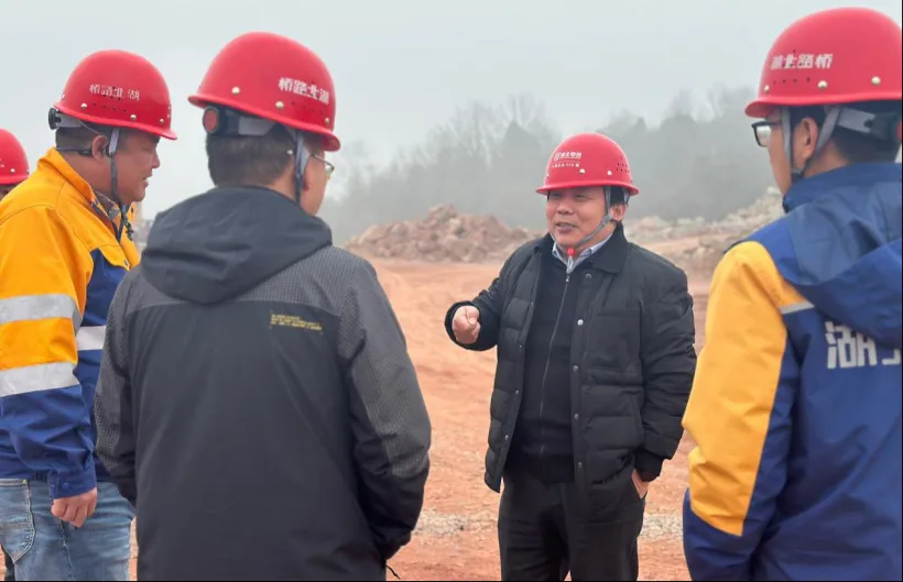在襄宜三標項目,余國中深入施工現場,對遠安東互通、預制梁場、花臺河大橋、鳴鳳山服務區等關鍵施工區域進行實地考察,并對項目建設提出具體要求。一是提高思想站位,強化責任擔當。項目管理人員要拓寬思維,化被動為主動,從“找問題”轉變為“找原因、找辦法、找措施”,主動發現解決問題。二是系統謀篇布局,科學排兵布陣。聚焦梁場建設等關鍵性施工節點,統籌“人、材、機”,合理調配資源,優化施工流程,確保各項工程有序推進。三是落實精細管理,提高內生動力。以“全員精細化經營項目”理念為導向,齊抓共管“安全、質量、進度、成本”四要素,保質保量保時完成施工任務。四是筑牢安全防線,夯實生產根基。堅持以安全標準化施工為主線,緊抓安全工作主動權,全力打造標準化、規范化、安全化的文明工地。