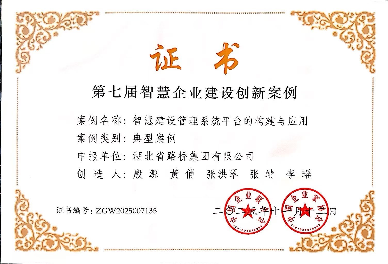 近日,中國企業聯合會公布了“第七屆智慧企業建設創新案例”入選名單。其中,聯投湖北路橋申報的《智慧建設管理系統平臺的構建與應用》從全國420項案例中脫穎而出,成功入選,案例類別為“典型案例”。
