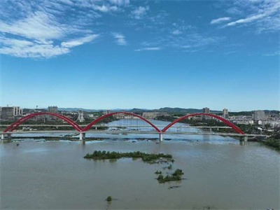 據(jù)了解,水都二橋是連接丹江口市新老城區(qū)的核心交通樞紐工程,橫跨于丹江口城區(qū)漢江左右岸,大橋全長1343米,主橋?qū)?4.3m,引橋?qū)?9m,雙向四車道+兩個(gè)非機(jī)動(dòng)車道+兩個(gè)人行道,是國內(nèi)最長的三跨連續(xù)鋼箱系桿拱橋。大橋造型似長虹臥波,結(jié)構(gòu)新穎,項(xiàng)目地處漢江庫區(qū)核心區(qū)域,緊鄰丹江口水庫,不僅承擔(dān)著緩解城區(qū)跨江交通壓力的重任,更因地處南水北調(diào)核心保護(hù)區(qū),對(duì)施工的生態(tài)環(huán)保要求、安全管控標(biāo)準(zhǔn)遠(yuǎn)超常規(guī)橋梁工程。自開工建設(shè)以來,該橋便被列為十堰市重點(diǎn)民生工程、交通攻堅(jiān)工程,其建設(shè)進(jìn)度與工程品質(zhì)一直備受社會(huì)各界關(guān)注。